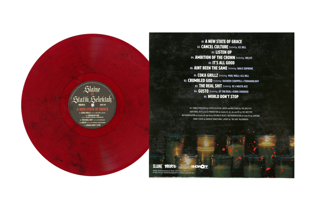 Boston legends Slaine and Statik Selektah reunite for A New State of Grace, the highly anticipated follow-up to their 2011 collaborative album A State of Grace. Fourteen years later, the duo has returned with an 11-track record that captures the energy of the original while carrying the weight, wisdom, and scars of everything that’s happened since.