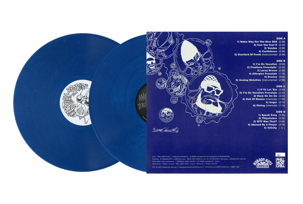 Analog Mutants (emcee Phill Most Chill on vocals, Snafu on production, and DJ Grazzhoppa on scratches) are back with the long-awaited debut album after 3 rapidly sold out 45s leading up to it! Twelve years in the making with an incredible attention to detail, every bar is on point, and this album will appeal to fans of De La Soul, Ultramagnetic MCs, and anyone that loves a crazy medley of samples and funky fast raps!