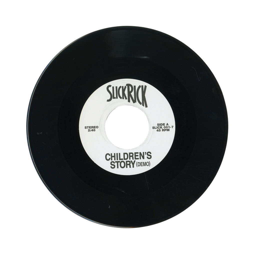 Ricky Walters burst on the scene in NYC in the mid-eighties as MC Ricky D and released two classics, "The Show" and "La-Di-Da-Di" as part of Doug E Fresh's Get Fresh Crew. He began working on solo material for what would become his classic 1988 debut album on Def Jam, The Great Adventures of Slick Rick. This 45 contains two early demo cuts of "Children's Story" and "Hey Young World."