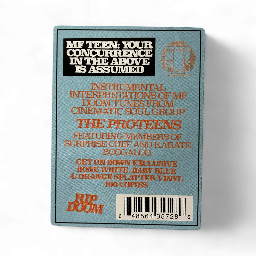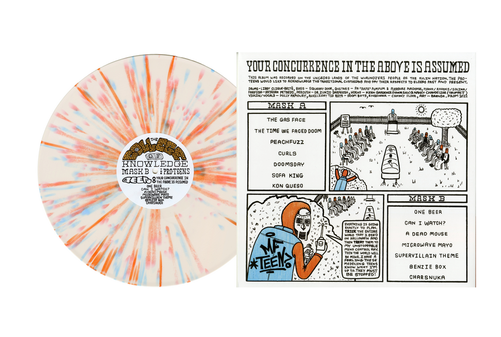 The full-length album follows the Pro-Teens now collectible 7”s of The Pro-Teens’ renditions of Peachfuzz b/w One Beer and Doomsday b/w Curls, releases that built a feverous anticipation for the complete album. Whitlock, or Libby Clique-Baité as he’s credited on the Pro-Teens records, says: “As the sessions went on, the Pro-Teens traversed lots of ground with the arrangements and productions. This diversity of tones, moods, feels and arrangements was an intentional act to mirror the diversity within DOOM's own diverse musical vocabulary. We wanted to fluctuate between putting their own spin on DOOM's classic tunes as well as staying true to the original source.” MF TEEN: Your Concurrence In The Above Is Assumed comes after 2021’s Snooch Dodd & The Pro-Teens - I Flip My Life Every Time I Fly, co-released with UK tastemaker label Mr Bongo. "