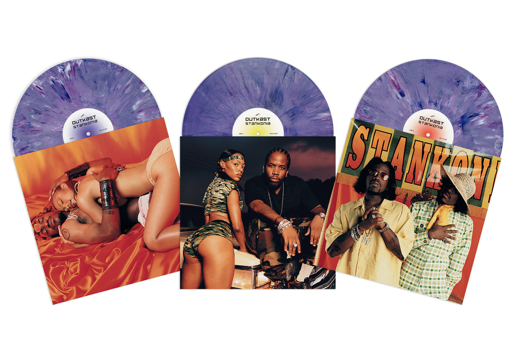 Sony Music's Legacy Recordings is proud to announce Outkast’s 25th anniversary limited edition deluxe 3-LP of Stankonia dropping on Halloween. Just in time for their induction to the Rock & Roll Hall of Fame, this deluxe set with an additional disc of bonus tracks, remixes, and instrumentals is pressed on purple marbled vinyl and features alternate cover art by André 3000 and comes with a fold-out glow-in-the-dark "Stankonia' Flag.