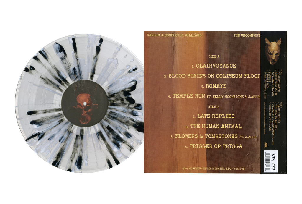 Ransom and Conductor Williams present The Uncomfortable Truth — now available on vinyl. The album finds the veteran lyricist and visionary producer pushing deeper into themes of faith, mortality, and survival. With haunting, soul-drenched production and razor-sharp storytelling, Ransom delivers some of his most introspective work to date. Featuring guest appearances from Kelly Moonstone and J.Arrr, The Uncomfortable Truth is a powerful statement from two artists redefining the sound and spirit of underground hip-hop.